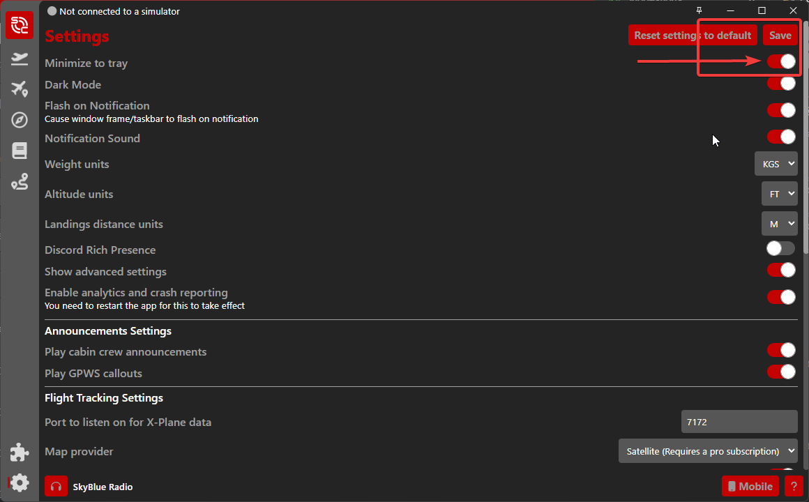 By default, SmartCARS 3 will minimize itself to the system tray when closing the application.